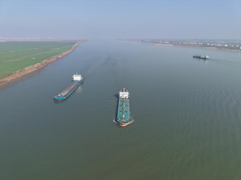 这是在湖南省临湘市江南镇长江村拍摄的长江(无人机照片)。新华社记者 丁春雨 摄